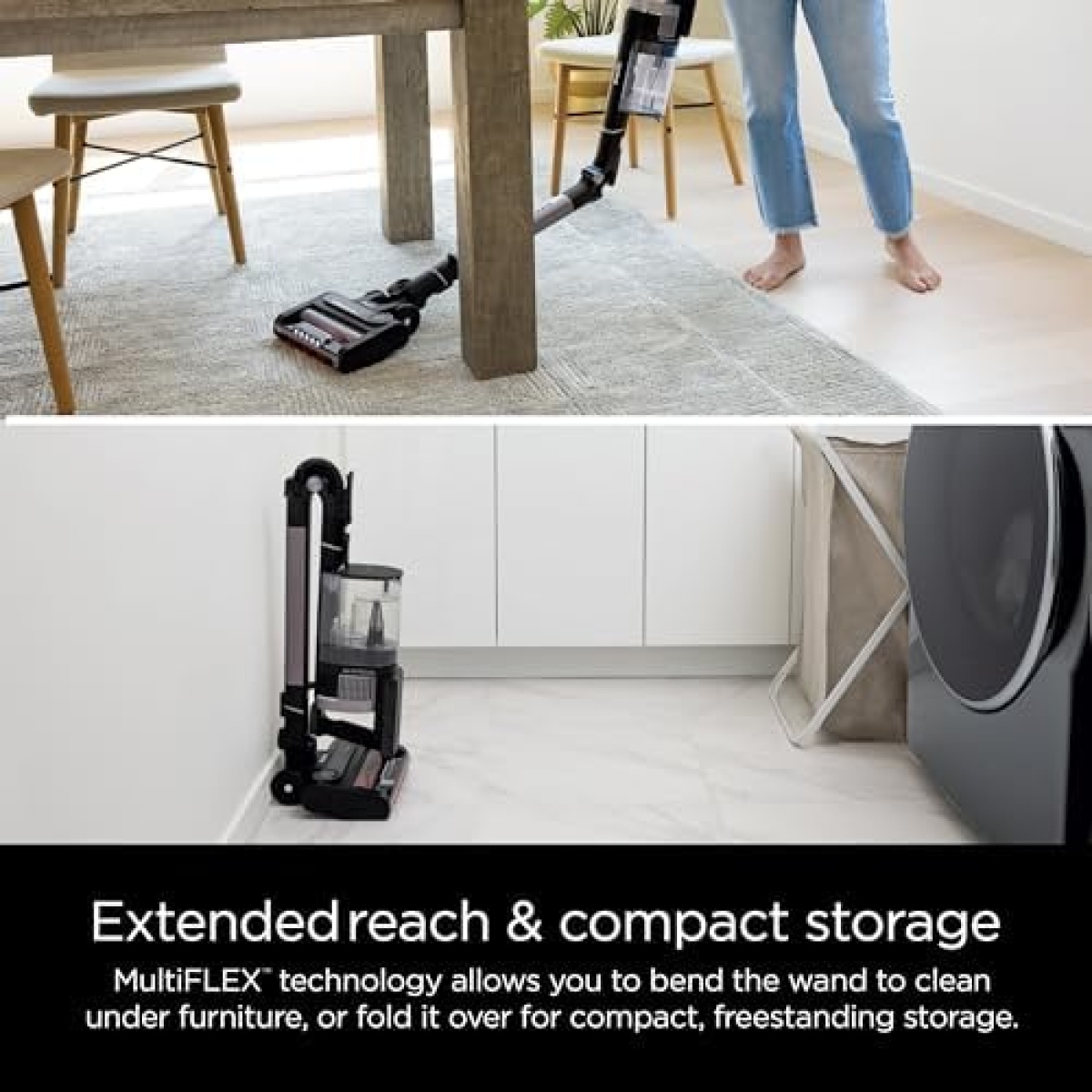 FLEXIBLE WAND: MultiFLEX technology allows you to bend the wand to clean under furniture, or fold it over for compact, freestanding storage.