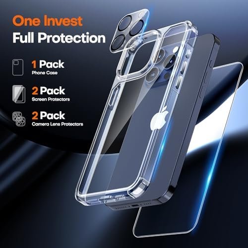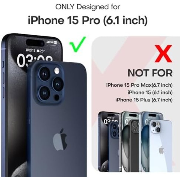 【5-in-1 360° Full Protection】This Shockproof for iPhone 15 Pro Case with 2 Pcs High Quality 9H Tempered Glass can protect your phone screen from scratch and broken but ultra-thin, comfortable and sensitive touch make you feel as nothing on screen. Provide 2 Pcs Camera Lens Protector that can protect the camera 100% and will not affect the quality of the photo.